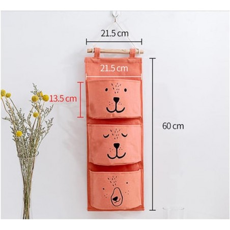 اكتشف منظم التخزين الجذاب القابل للتعليق على الحائط، الذي يتميز بثلاث جيوب على شكل وجوه حيوانات مرحة بلون كورال برتقالي دافئ. مثالي لرياض الأطفال أو غرف اللعب، هذه الحلول متعددة الوظائف مثالية لتنظيم الألعاب والقرطاسية مع توفير مساحة الأرضية. مصنوع من قماش متين مع قضيب خشبي أنيق، يجمع بين الوظائف والتصميم الرائع لتعزيز أي غرفة.