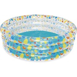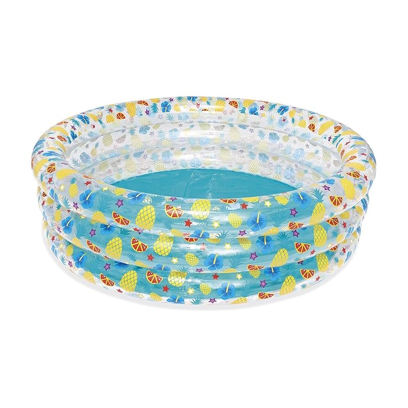 حوّل حديقة منزلك إلى جنة صيفية مع حمام السباحة القابل للنفخ الرائع لدينا. مصمم بشكل مثالي للأطفال، يتميز هذا المسبح النابض بالحياة بهيكل شفاف مزين بأنماط ملونة من الفواكه والزهور والمخلوقات البحرية المرحة. هذه التصاميم الجذابة تلتف حول الحافة العلوية، مما يخلق جوًا جذابًا يثير الفرح والخيال.