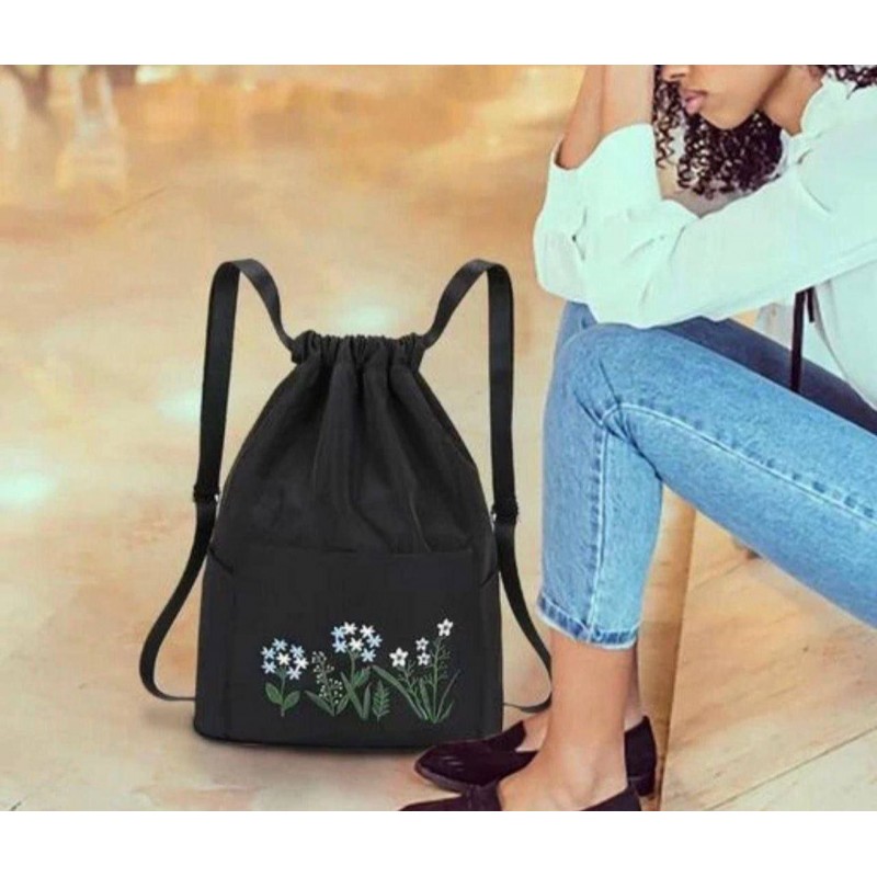 حقيبة ظهر غير رسمية مطرزة - بأسلوب زهري ووظيفي