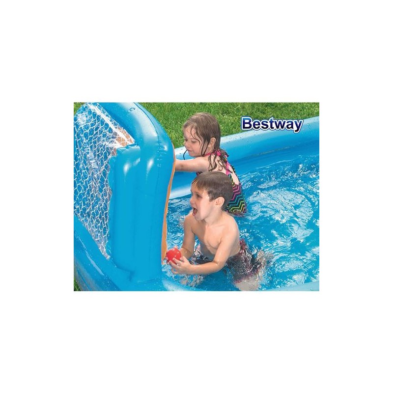 تتميز لعبة المسبح القابلة للنفخ بشكل مستطيل مع زوايا مدورة، مما يضمن السلامة للصغار أثناء غوصهم في المرح. مصنوعة من الفينيل المتين المقاوم للثقب، تضمن طول العمر حتى خلال أكثر جلسات اللعب حيوية. تكمل لوحة الألوان الزرقاء الزاهية اللمسات الجذابة باللونين البرتقالي والأبيض حول مناطق التسجيل، مما يجعلها جذابة بصريًا.