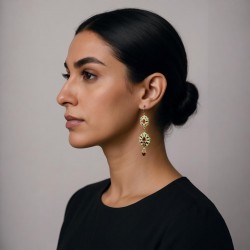 أضف لمسة من الأناقة الخالدة إلى مظهرك مع هذه الأقراط المتدلية المستوحاة من الطراز القديم، التي تتميز بتفاصيل معقدة وأحجار كريمة نابضة بالحياة.