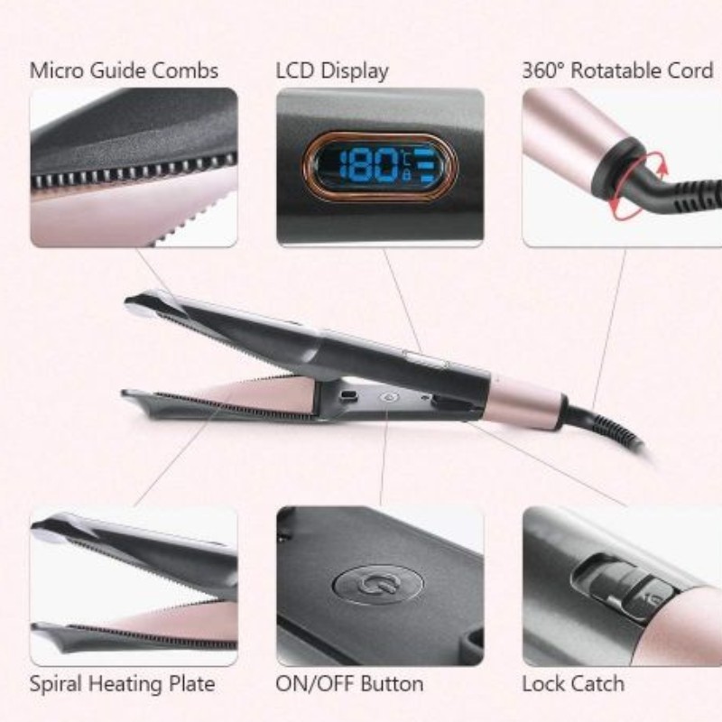 احصلي على تصفيف بجودة صالون مع هذه الأداة الشعرية المتعددة الاستخدامات 2 في 1، المثالية لكل من التجعيد والتسريح.