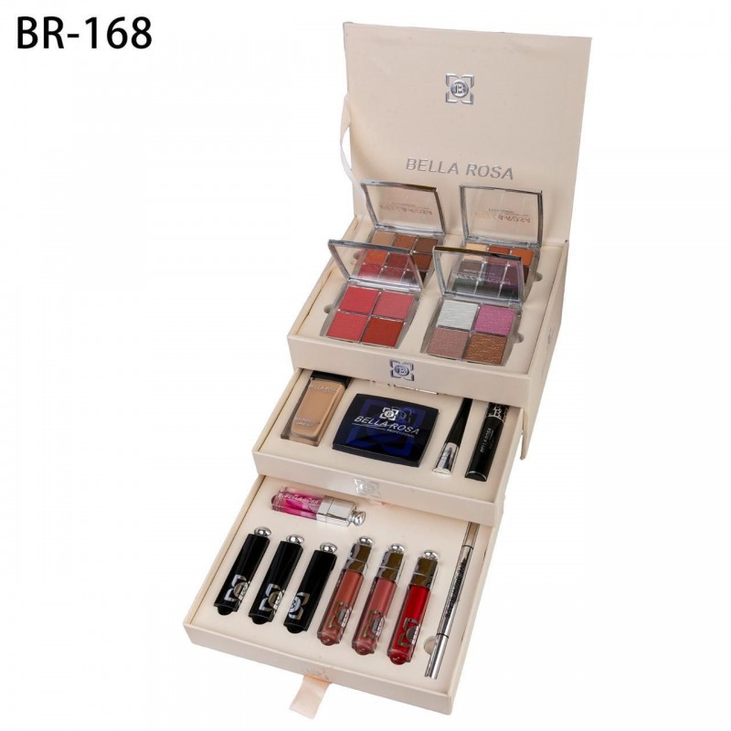 اكتشف الأفضل في الجمال مع مجموعة مكياج بيلا روزا BR-168، وهي مجموعة شاملة مصممة لعشاق المكياج الذين يتوقون إلى التنوع والأناقة. تأتي هذه المجموعة الرائعة في علبة مستطيلة بلون الكريمة، لا تبدو أنيقة فحسب، بل توفر أيضًا سهولة الحمل بفضل مقبضها المريح.