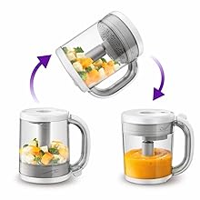 Cet appareil réunit tout ce dont vous avez besoin pour préparer dans un même bol des repas sains pour votre bébé. Dès que les aliments sont cuits, il vous suffit de soulever le bol, de le retourner et de le positionner sur la base pour mixer le tout à la consistance souhaitée.