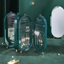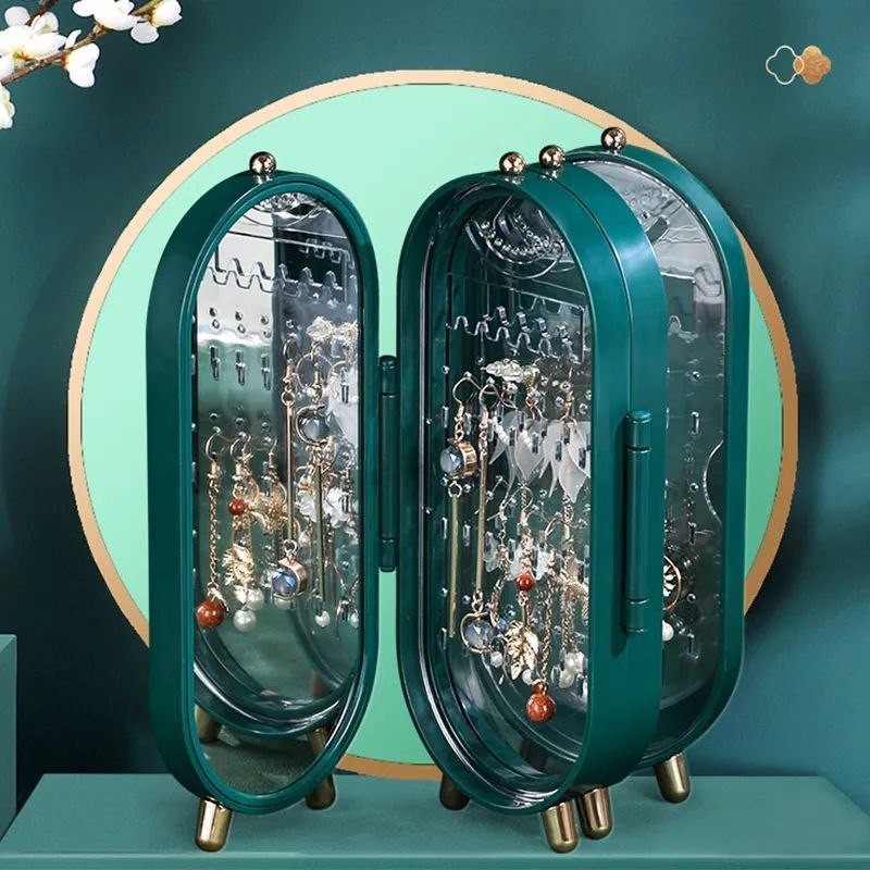 يحتوي حامل المجوهرات المبتكر هذا على ثلاثة أقسام مفصلية تفتح مثل كتاب، مما يتيح سهولة الوصول إلى كل مقصورة. مع عدة خطاطيف وفتحات مصممة خصيصًا لكل من الأقراط الصغيرة والمعلّقة، يمكنك عرض مجموعتك بسهولة مع الحفاظ على كل شيء منظّمًا. يضمن التصميم الشفاف أن تعثر بسرعة على الزوج المثالي دون الاضطرار للتنقيب في الفوضى.