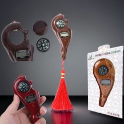 A multifunctional digital tasbih equipped with a compass for convenience during travel and prayers.