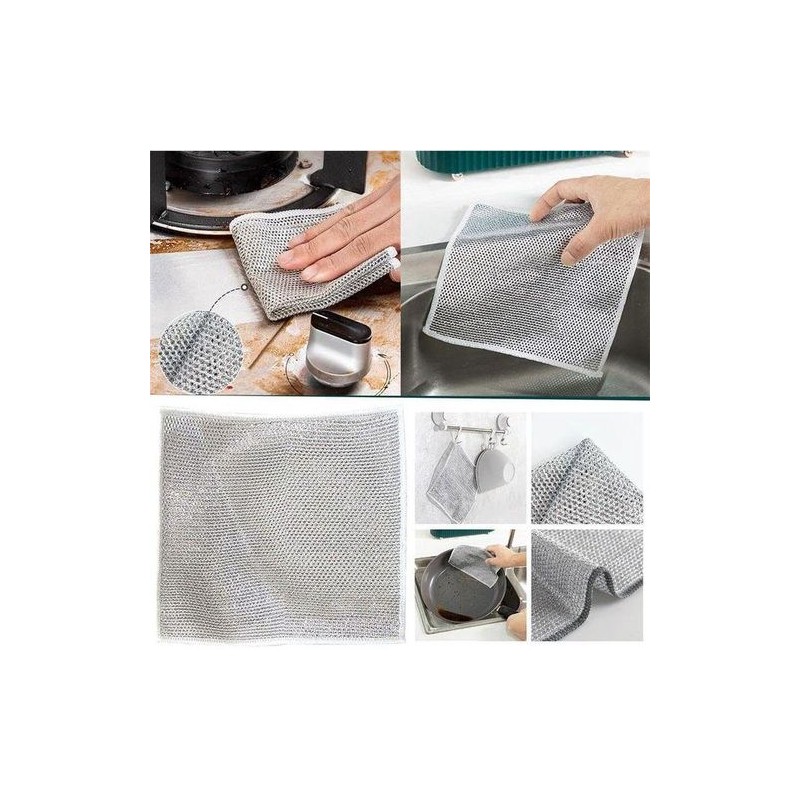 Discover the ultimate kitchen cleaning cloth, crafted from durable metallic mesh for effective scrubbing without damaging surfaces. Its versatile design makes it perfect for tackling tough grime on dishes, sinks, and even fruits and vegetables. Experience superior cleaning power with this essential tool, ensuring your kitchen stays spotless and hygienic.