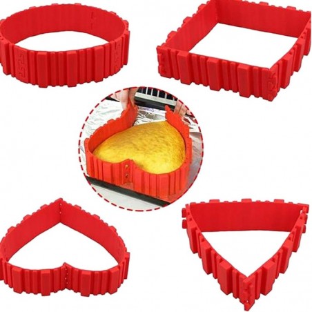These flexible silicone baking molds allow you to create a variety of shapes for your cakes and pastries. The adjustable design lets you form circular, square, heart, and other creative shapes easily. Made from food-grade silicone, these molds are non-stick, heat-resistant, and easy to clean, making them perfect for both amateur and professional bakers.