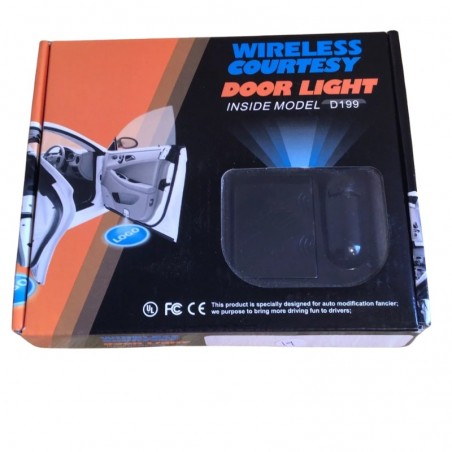 The Wireless Courtesy Door Light, Model D199, is designed for car enthusiasts who wish to enhance their vehicle's ambiance and safety. This innovative accessory projects a logo or design onto the ground whenever the car door is opened, adding a custom touch to your vehicle. Easy to install without the need for wiring, this door light is battery-operated and compatible with most car models. Whether you're looking to impress passengers or simply add a personalized flair, the Wireless Courtesy Door Light is the perfect choice.