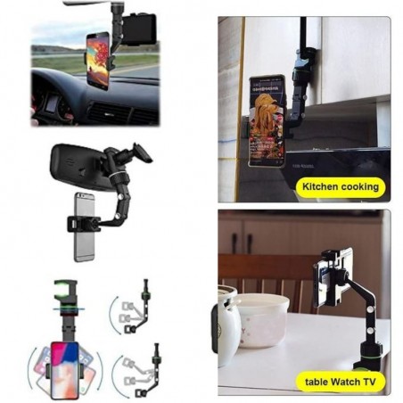 Introducing the 360° Adjustable Universal Phone Mount, your ultimate solution for hands-free convenience. Designed to securely hold your smartphone, this mount is perfect for various settings such as driving, kitchen cooking, or watching videos at your table. Its flexible arm and 360° rotation capability ensure optimal viewing angles, while its sturdy grip keeps your device safe and stable. Compatible with most smartphones, this mount is easy to install and adjust, making it a must-have accessory for anyone on the go.