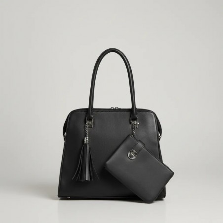 Elevate your style with this luxurious black leather handbag that combines functionality with fashion. Featuring a sleek design, this handbag is perfect for any occasion, whether it's a day at the office or an evening out. The bag comes with a stylish tassel charm and a matching pouch for added convenience, ensuring you have everything you need at your fingertips. Crafted from high-quality materials, this handbag promises durability and timeless appeal.