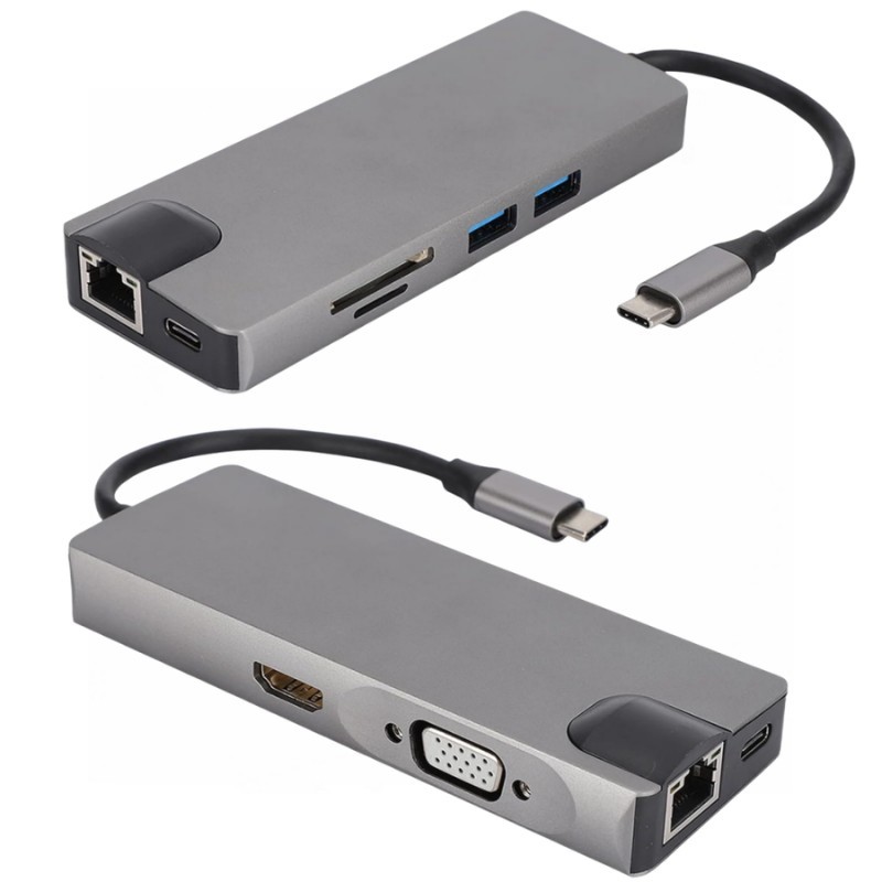 Transform your workspace with the 8-in-1 Type-C Docking Station, designed to enhance your productivity and streamline your device connections. Featuring ports for HDMI and VGA, USB 3.0, Ethernet, and SD/TF card slots, this versatile docking station allows you to connect multiple devices simultaneously. Whether you're working from home or in the office, enjoy seamless data transfer, vivid 4K display output, and high-speed internet access. Compact and efficient, this docking station is an essential tool for professionals on the go.