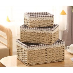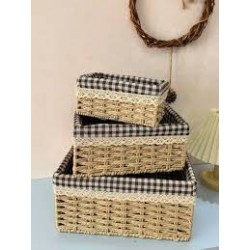 Découvrez le mélange parfait de style et de fonctionnalité avec notre ensemble de trois paniers de rangement emboîtables. Conçus pour améliorer l'organisation de votre maison, ces paniers sont non seulement pratiques mais ajoutent également une touche de charme à n'importe quel espace. La forme rectangulaire de chaque panier permet un empilement efficace, les rendant idéaux pour économiser de l'espace dans votre salon, la chambre de bébé ou votre bureau à domicile. Le plus grand panier dispose d'une large base pour des besoins de rangement substantiels, tandis que le plus petit est parfait pour garder les petits objets bien rangés. Fabriqués à partir de fibres naturelles tissées durables comme le rotin, ces paniers affichent une esthétique rustique qui complète divers styles de décoration. La doublure en tissu à carreaux noir et blanc ajoute une touche douce et protège vos affaires tout en améliorant le design global. Cette doublure en coton ou en mélange de coton non seulement a fière allure mais offre également une sensation accueillante. L'extérieur présente une belle couleur beige naturel ou tan clair qui met en valeur l'aspect organique des matériaux utilisés. Chaque panier est fini avec une bordure en dentelle décorative le long des bords supérieurs, ajoutant une couche supplémentaire de détail qui élève leur attrait visuel. Ces paniers emboîtables polyvalents sont parfaits pour organiser des jouets, des loisirs créatifs, des vêtements ou tout autre objet ménager que vous souhaitez garder en ordre. Leur design classique s'intègre parfaitement dans divers thèmes de décoration, du chaleureux style ferme au chic moderne épuré, en faisant un ajout essentiel à votre maison. Si vous cherchez à allier style et praticité dans votre organisation de maison, notre ensemble de trois paniers de rangement emboîtables est un excellent choix. Adoptez à la fois la forme et la fonction dès aujourd'hui !