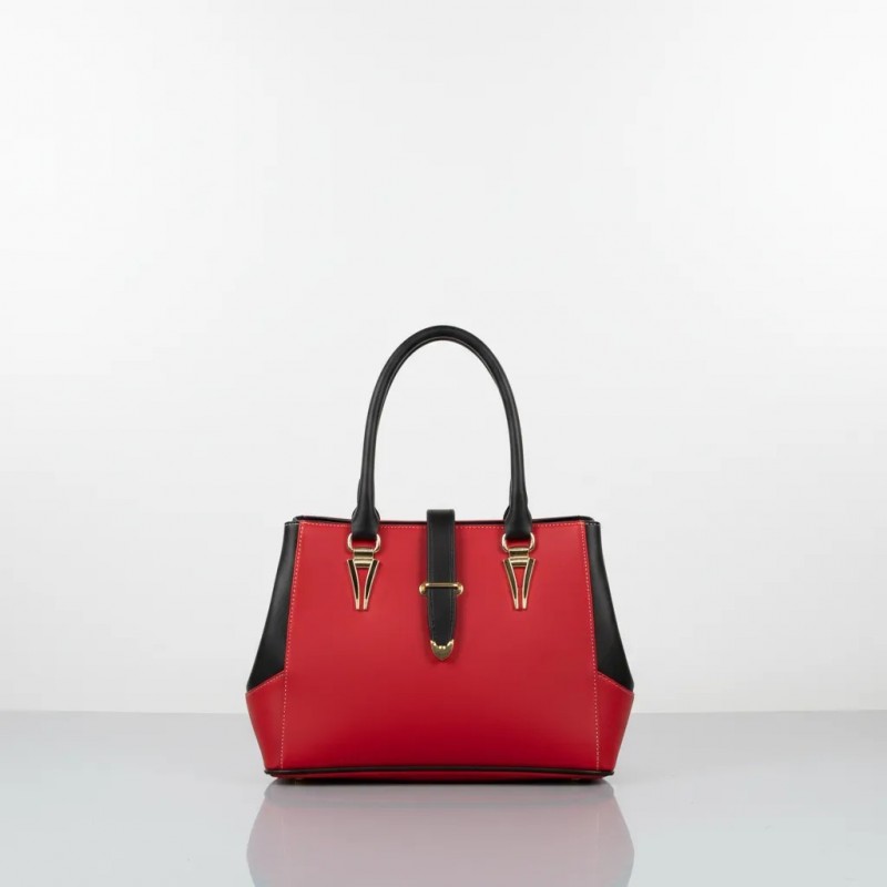 Ce sac à main exquis présente un corps rouge frappant avec des accents noirs contrastants, en faisant un accessoire incontournable pour toute occasion. Fabriqué à partir de matériaux de haute qualité, il garantit durabilité et style. Le matériel doré ajoute une touche luxueuse, tandis que l'intérieur spacieux offre amplement de place pour tous vos essentiels. Que vous vous rendiez à une réunion ou à une soirée, ce sac à main rehaussera votre look avec son design chic.
