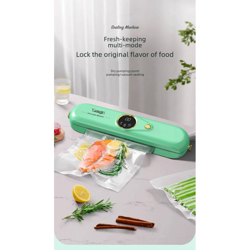 Découvrez le scellant sous vide ultime pour la conservation des aliments, avec un design élégant en vert menthe et des commandes numériques faciles à utiliser. Cet appareil compact élimine efficacement l'air des sacs, prolongeant la durée de conservation des viandes, des fruits et des légumes. Parfait pour les cuisiniers à domicile et les préparateurs de repas, il améliore la saveur grâce à la cuisson sous vide tout en garantissant la fraîcheur dans votre cuisine.