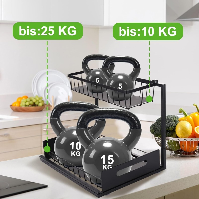Maximisez votre espace cuisine avec cet organisateur élégant sous l'évier, doté de deux paniers coulissants pour un accès facile à vos essentiels.