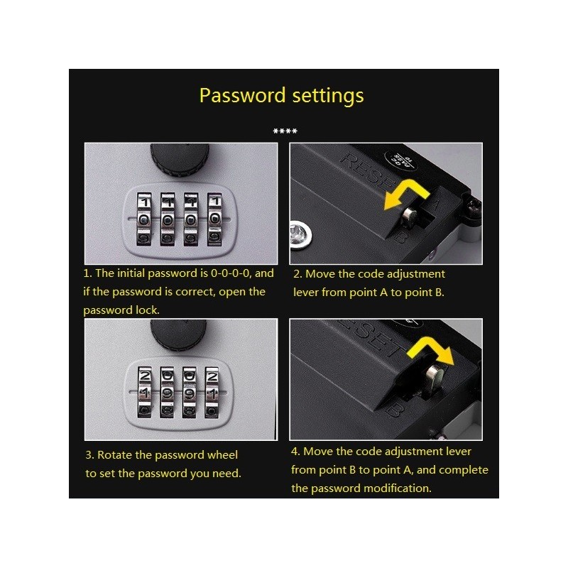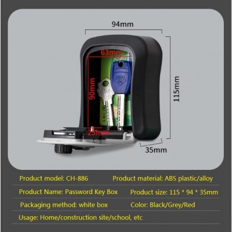 Le Coffre à clés avec mot de passe offre un moyen sûr et pratique de stocker et d'accéder à vos clés. Fabriqué en plastique ABS et en alliage, ce coffre à clés est conçu pour durer et résister à des environnements difficiles. Idéal pour une utilisation à la maison, sur les chantiers de construction ou dans les écoles, il dispose d'un mécanisme de mot de passe robuste pour garantir que vos clés sont en sécurité et accessibles uniquement aux utilisateurs autorisés.